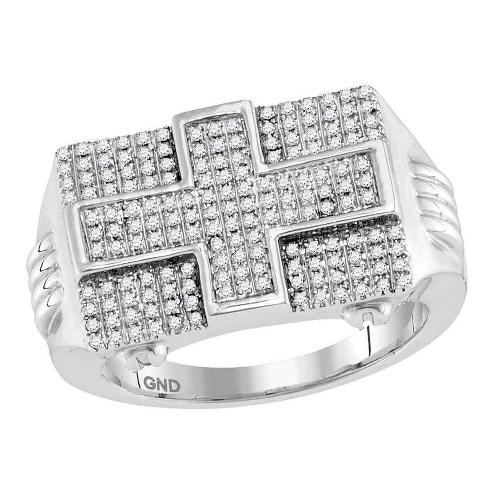 REF-67K3R - SKU: GD73254 ---- Mens Diamond Rectangle Cross Cluster Ring 5/8 Cttw 10kt White Gold