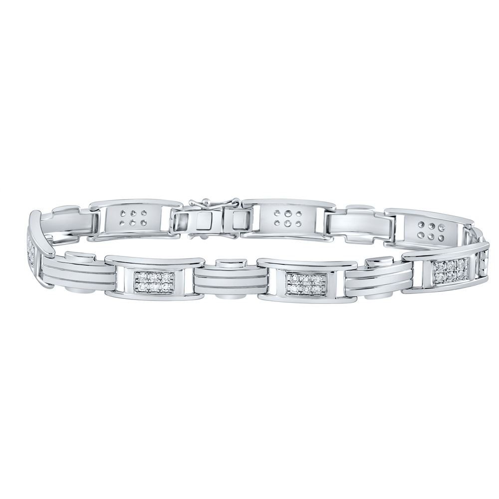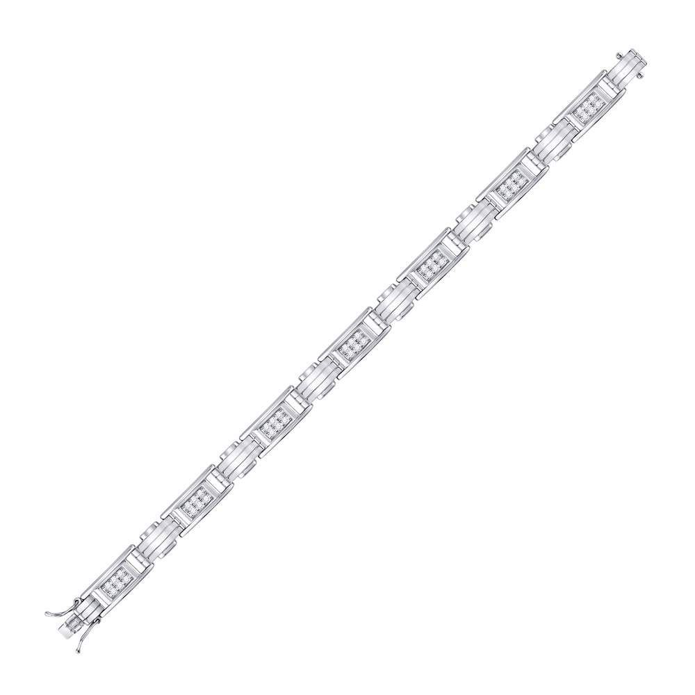 10kt White Gold Mens Round Diamond Rectangle Link Fashion Bracelet 1 Cttw
