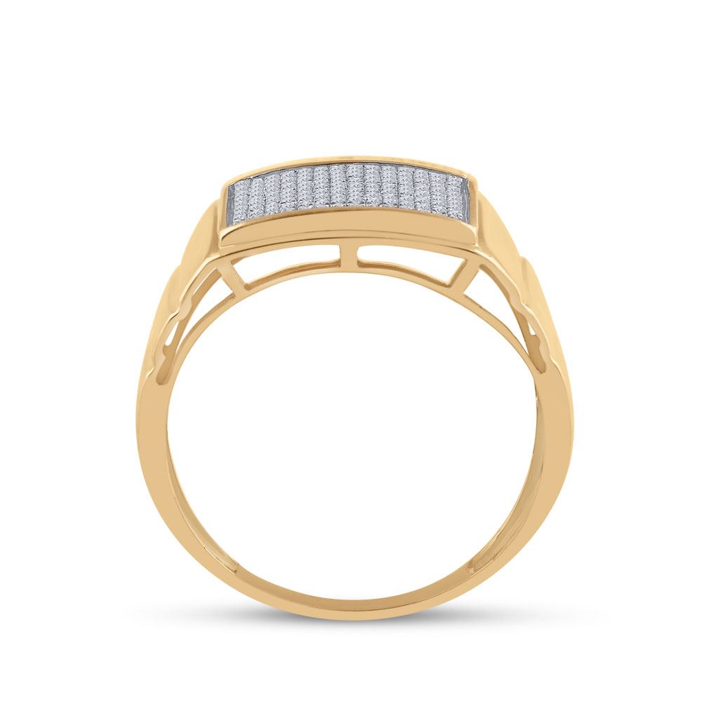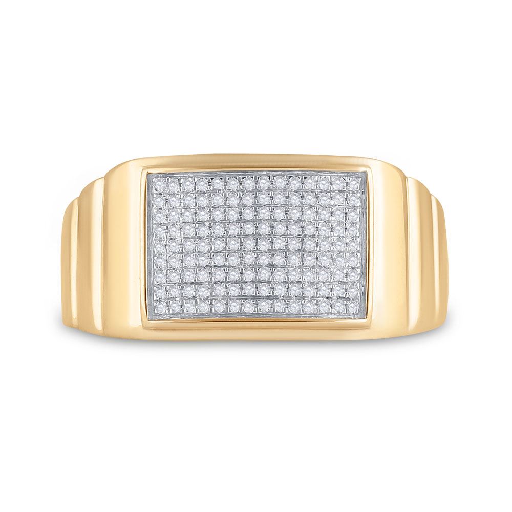 10kt Yellow Gold Mens Round Diamond Ribbed Rectangle Cluster Ring 1/4 Cttw