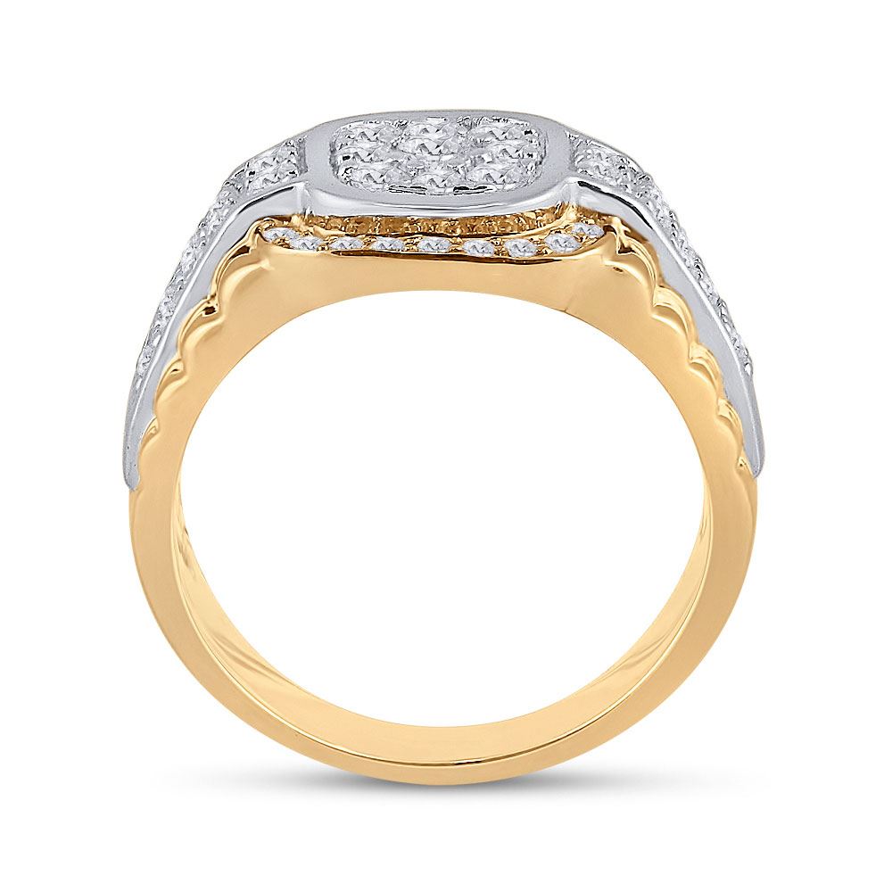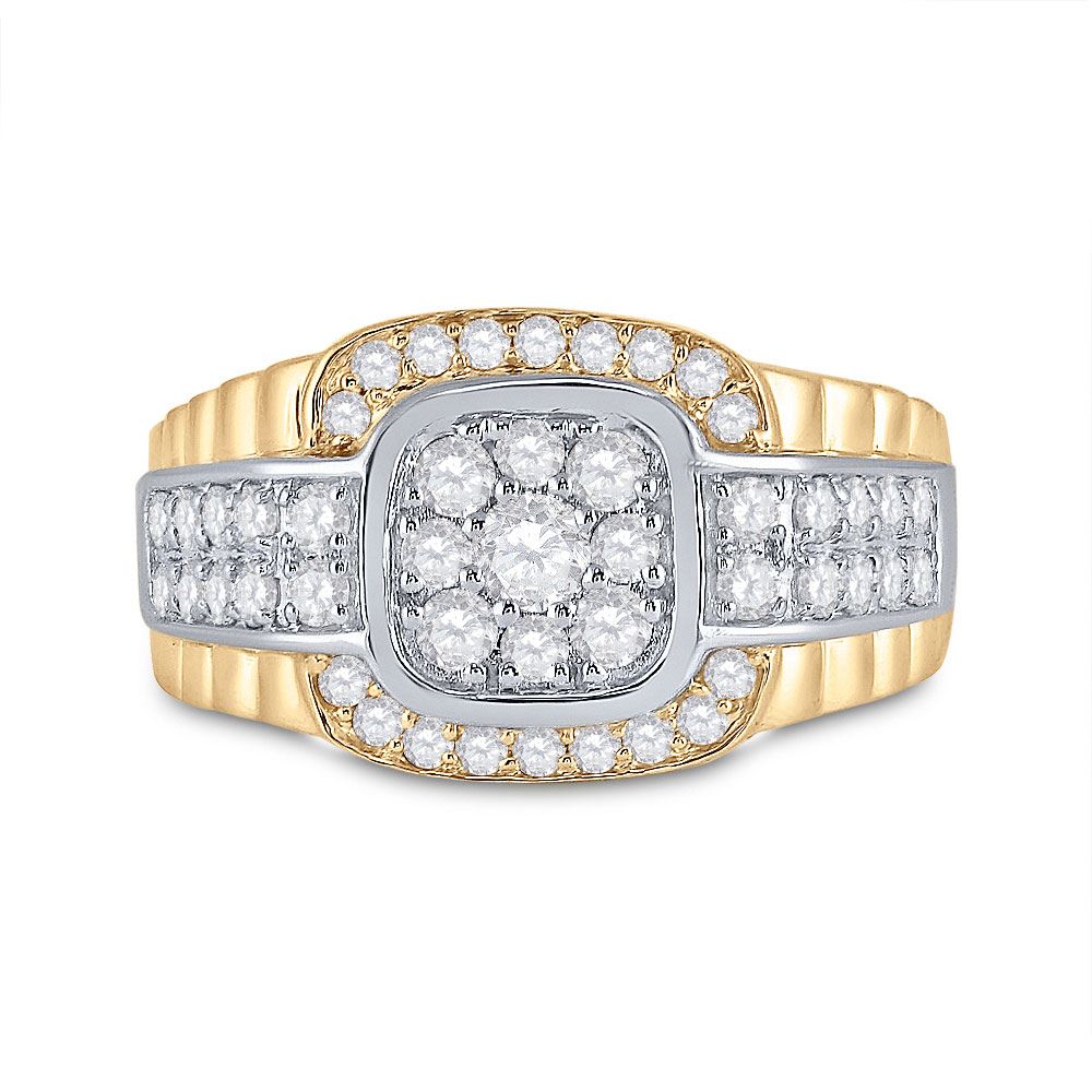 10kt Two-tone Gold Mens Round Diamond Ribbed Square Cluster Ring 1-1/4 Cttw