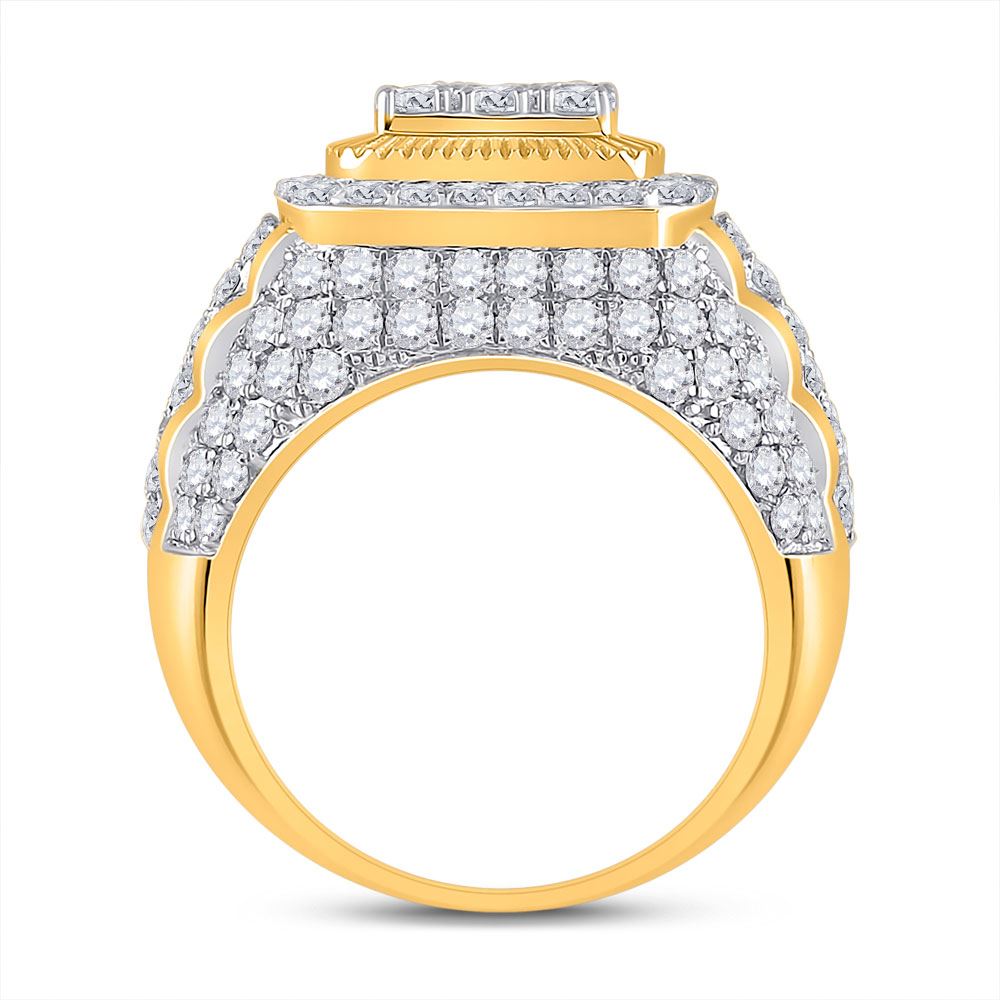 14kt Yellow Gold Mens Round Diamond Ribbed Square Cluster Ring 5 Cttw