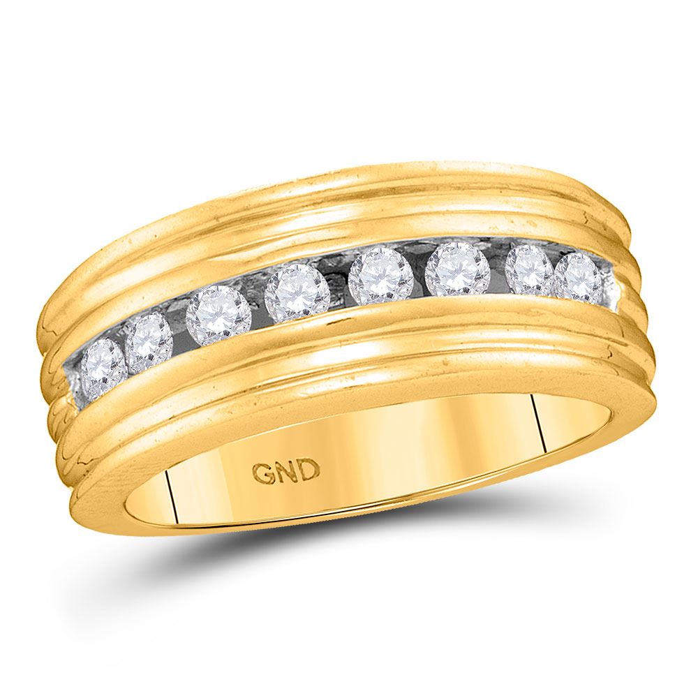 REF-50N0F - SKU: GD110068 ---- Mens Diamond Ridged Single Row Wedding Band Ring 1/2 Cttw 10kt Yellow Gold