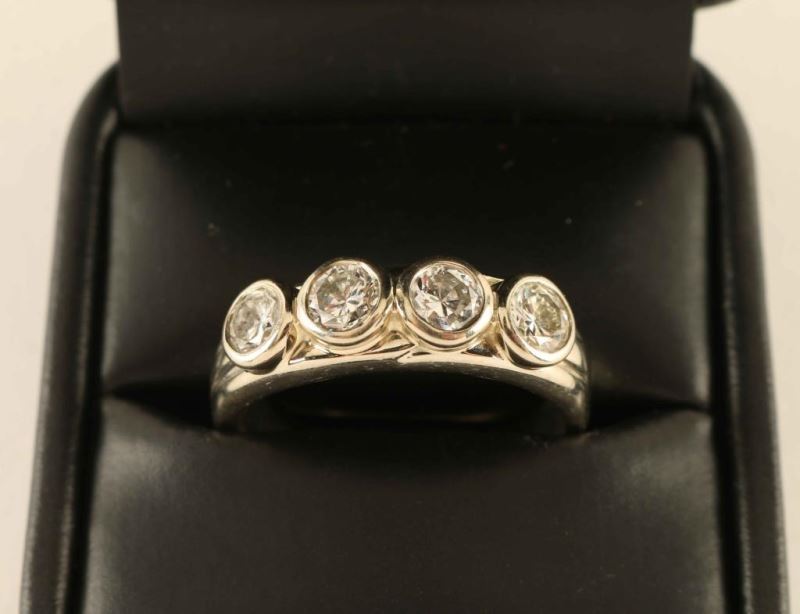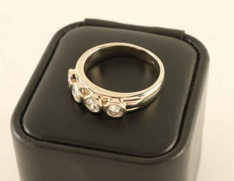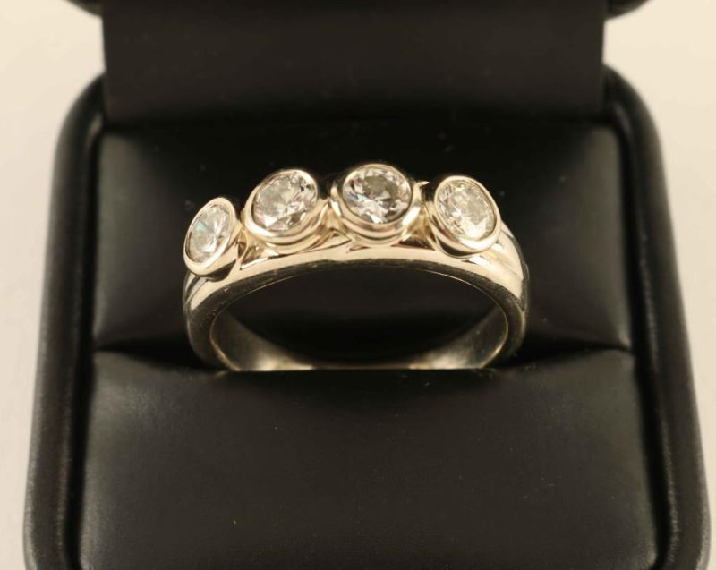Set In Heavy White Gold, 4 Round Cut Stones Set In An Abstract Pattern. 2ct Total Weight.