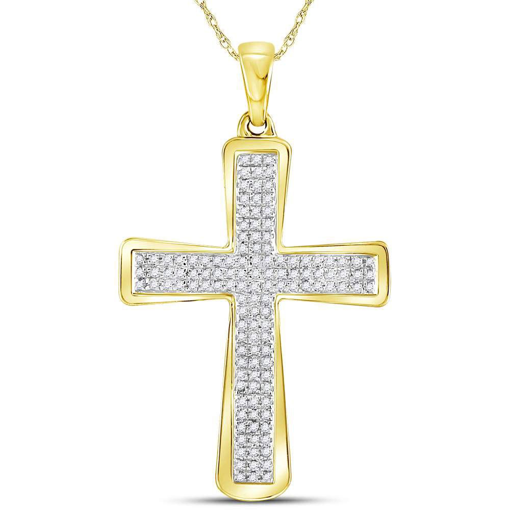 10kt Yellow Gold Mens Round Diamond Roman Cross Charm Pendant 1/3 Cttw