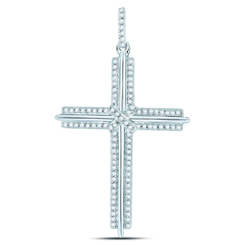 REF-20M0X - SKU: GD118941 ---- Mens Diamond Roman Cross Charm Pendant 1/4 Cttw 10kt White Gold