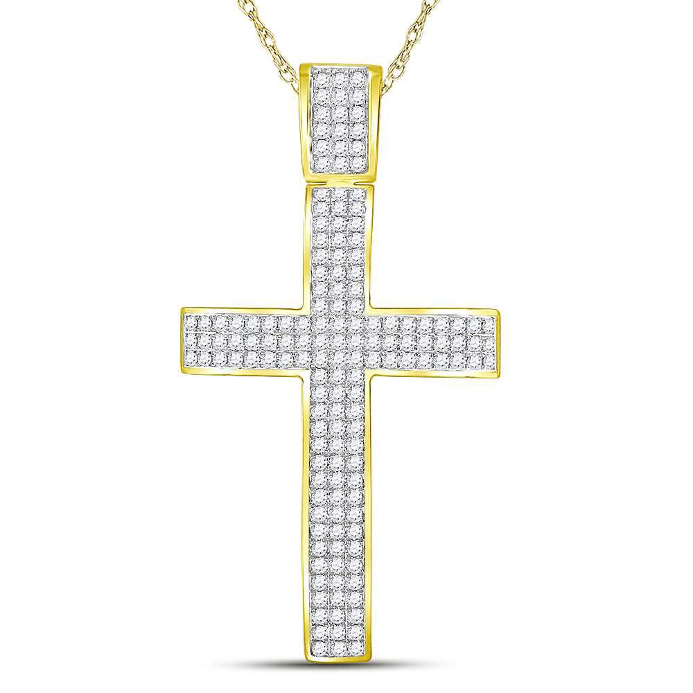 REF-160Y9X - SKU: GD117394 ---- Mens Diamond Roman Cross Crucifix Charm Pendant 2-1/2 Cttw 10kt Yellow Gold