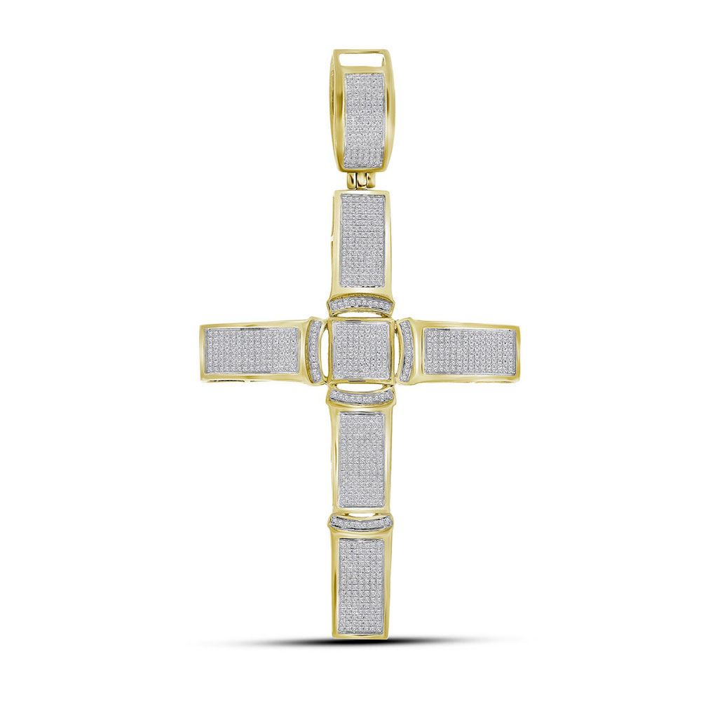 REF-150K0R - SKU: GD77903 ---- Mens Diamond Roman Cross Religious Charm Pendant 1-1/2 Cttw 10kt Yellow Gold