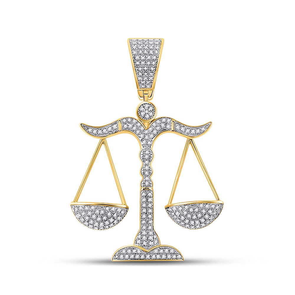 10kt Yellow Gold Mens Round Diamond Scales of Justice Charm Pendant 3/8 Cttw