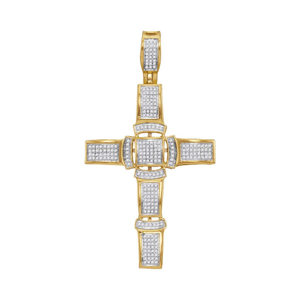 REF-44M5X - SKU: GD77890 ---- Mens Diamond Segmented Cross Charm Pendant 1/2 Cttw 10kt Yellow Gold