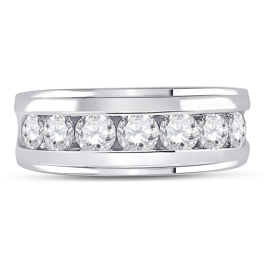 14kt White Gold Mens Round Diamond Single Row Band Ring 2 Cttw