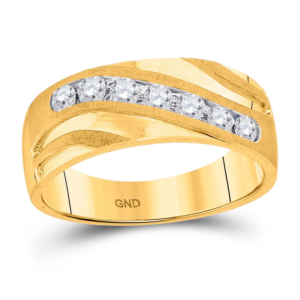 REF-71A8V - SKU: GD94045 ---- Mens Diamond Single Row Wedding Band Ring 1/2 Cttw 10kt Yellow Gold