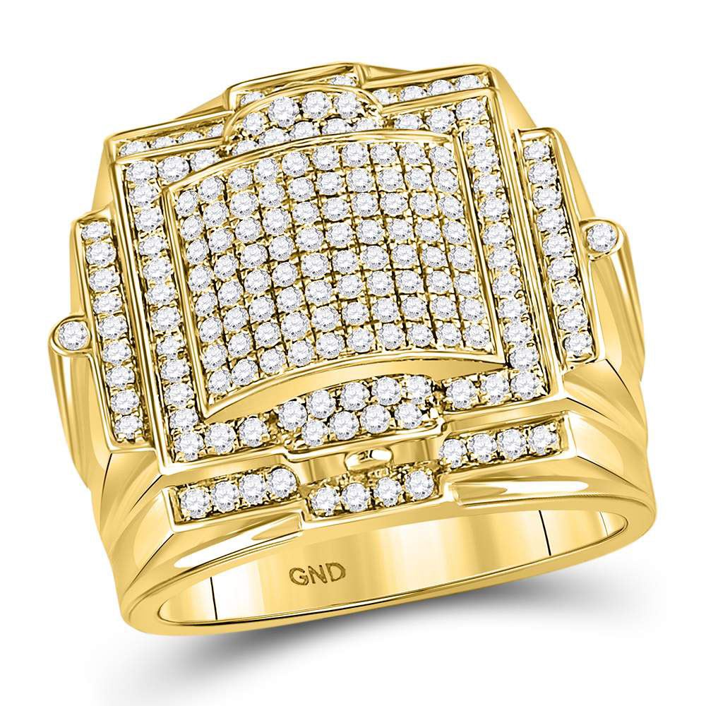 REF-124H5W - SKU: GD128156 ---- Mens Diamond Square Big Look Cluster Ring 1-1/2 Cttw 10kt Yellow Gold
