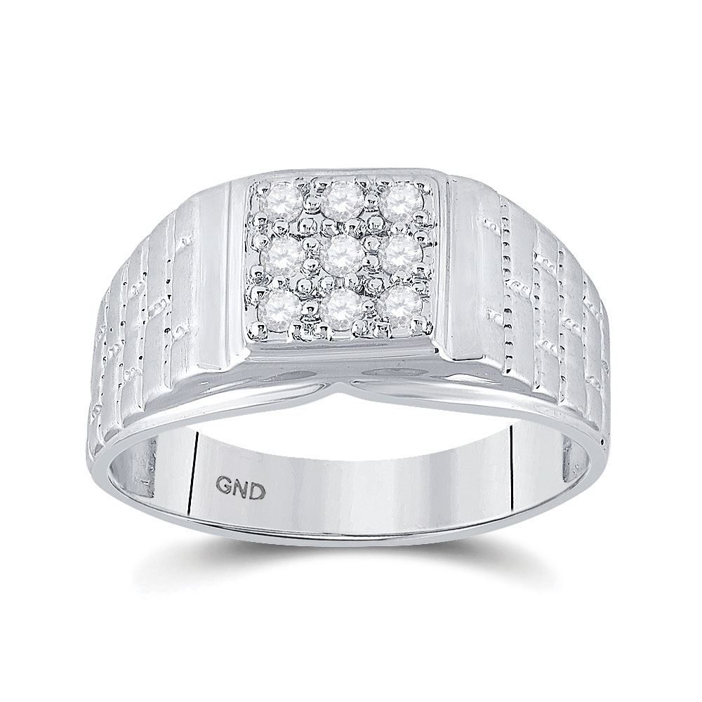 10kt White Gold Mens Round Diamond Square Cluster Brick Ring 1/4 Cttw