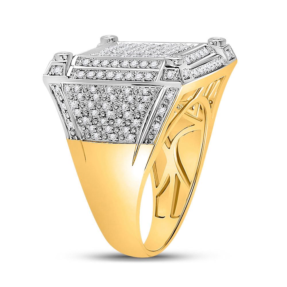14kt Yellow Gold Mens Round Diamond Square Cluster Ring 1-3/8 Cttw