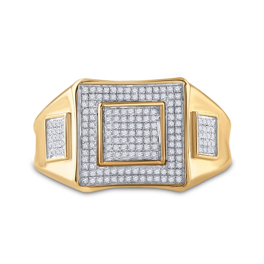 10kt Yellow Gold Mens Round Diamond Square Cluster Ring 1/3 Cttw