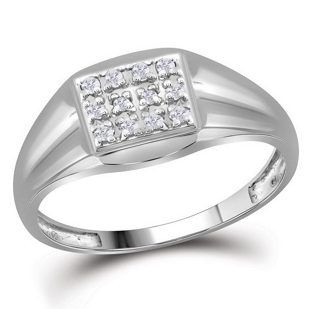 REF-15K5R - SKU: GD13963 ---- Mens Diamond Square Cluster Ring 1/8 Cttw 10kt White Gold