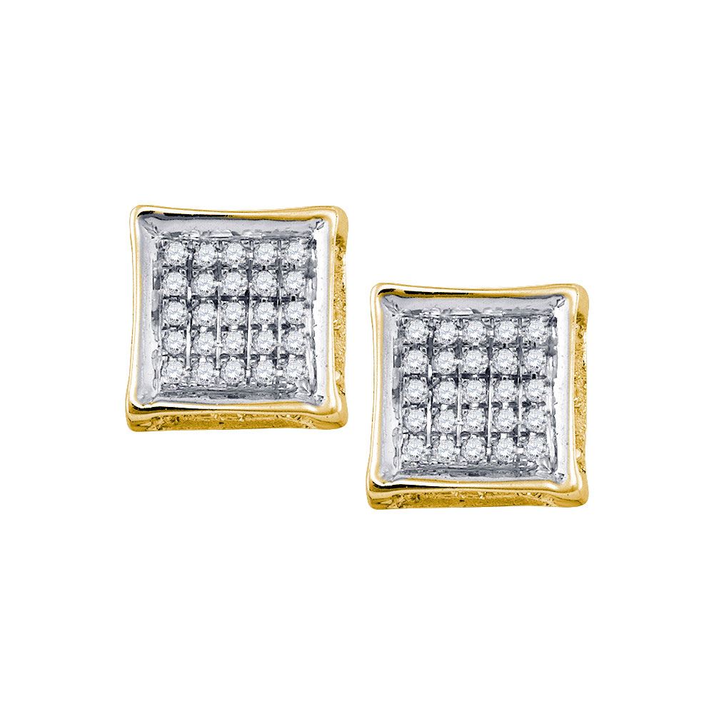 REF-14G5M - SKU: GD67636 ---- Mens Diamond Square Cluster Stud Earrings 1/8 Cttw 10kt Yellow Gold