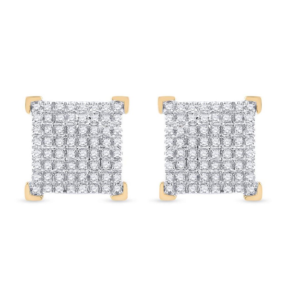 10kt Yellow Gold Mens Round Diamond Square Earrings 1/3 Cttw