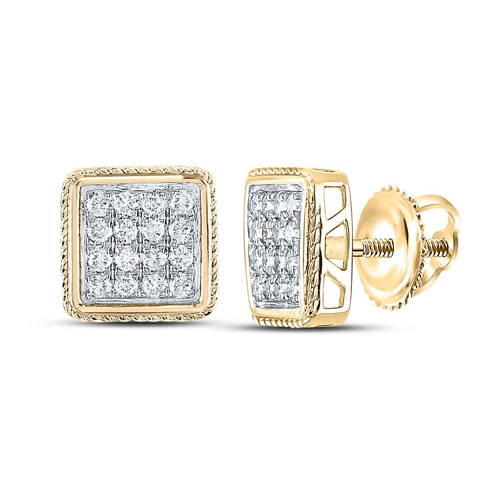 10kt Yellow Gold Mens Round Diamond Square Earrings 1 Cttw