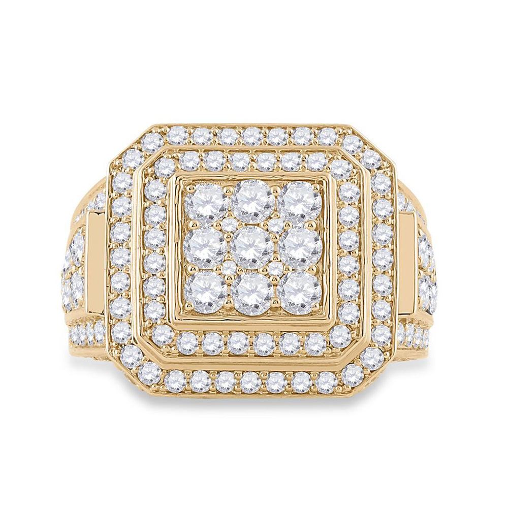 14kt Yellow Gold Mens Round Diamond Square Ring 4 Cttw