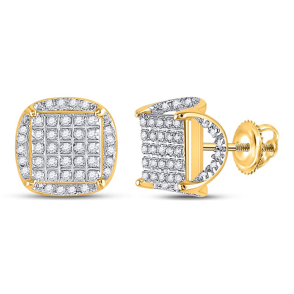 10kt Yellow Gold Mens Round Diamond Square Stud Earrings 1/3 Cttw