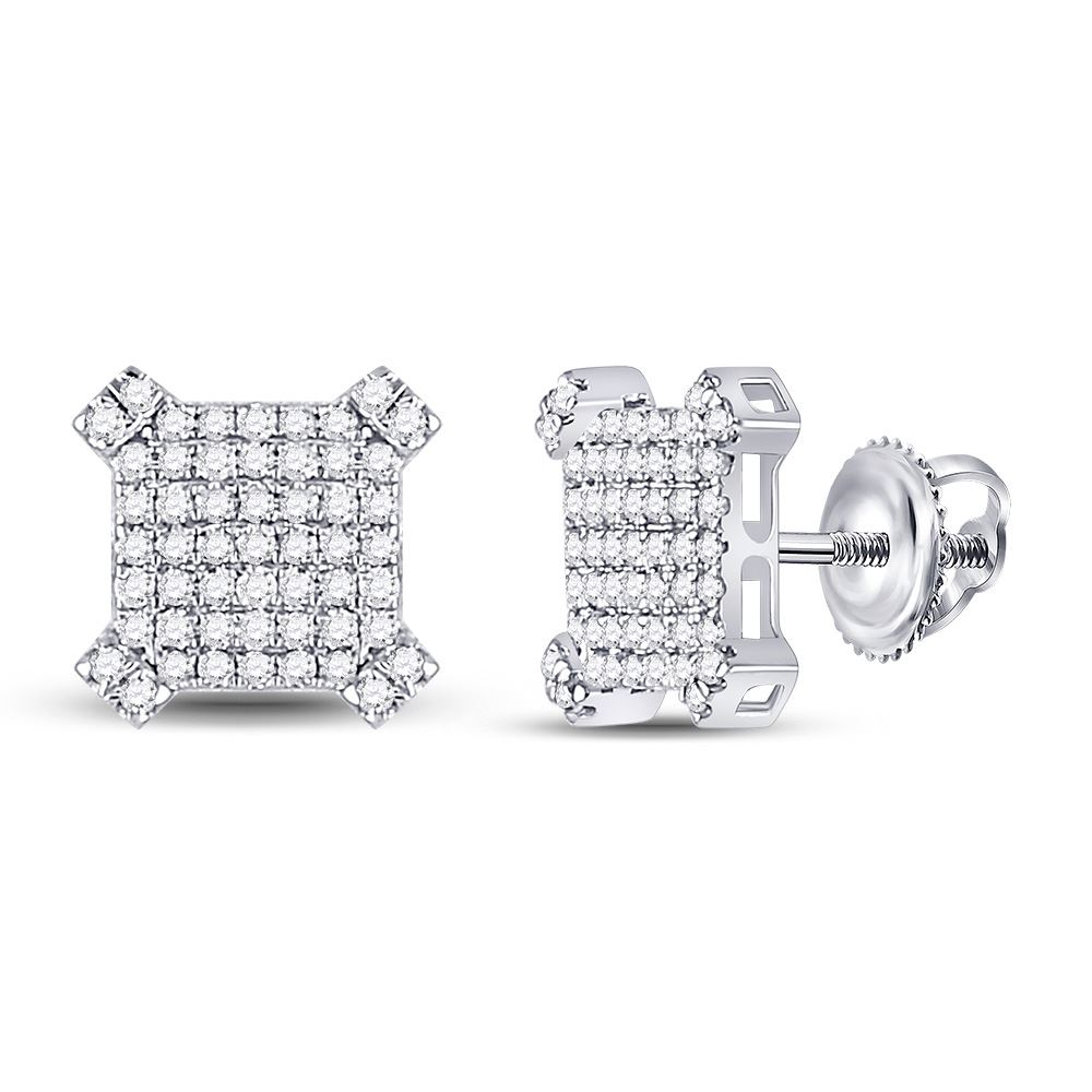 14kt White Gold Mens Round Diamond Squared Cluster Earrings 1/3 Cttw