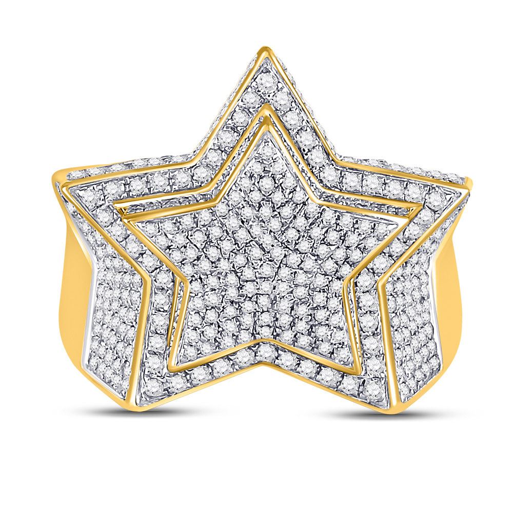 10kt Yellow Gold Mens Round Diamond Statement Cluster Star Ring 1-3/4 Cttw