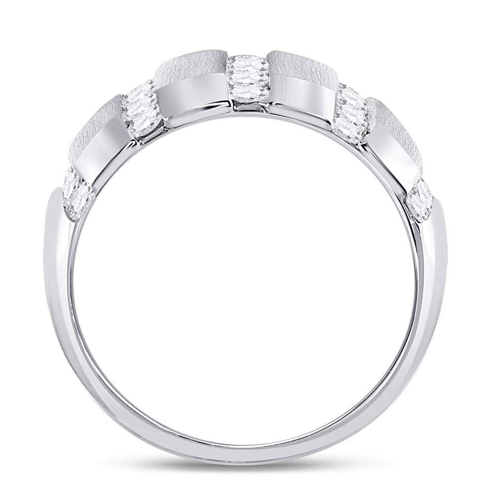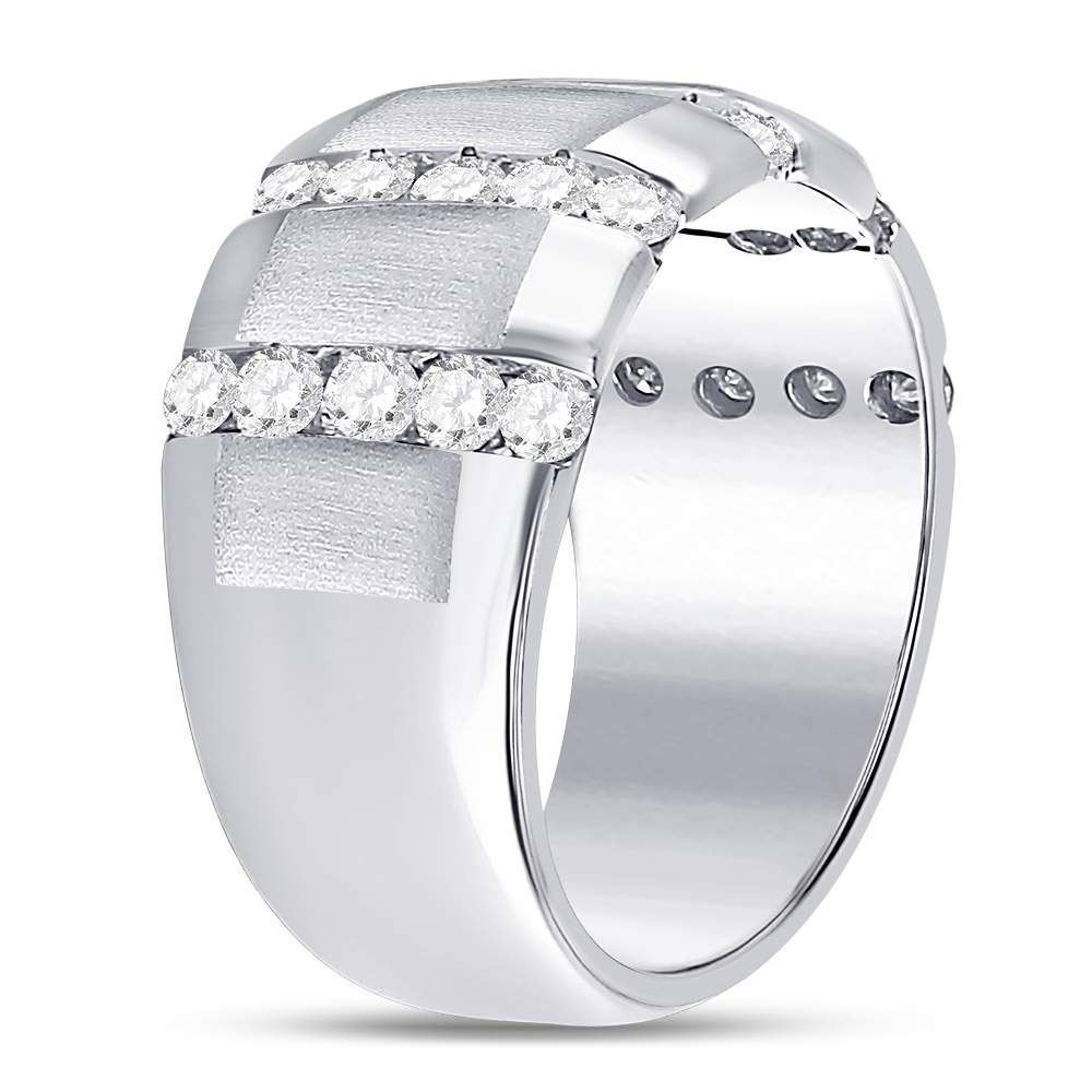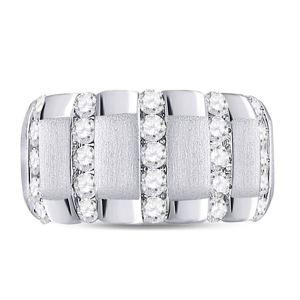 14kt White Gold Mens Round Diamond Striped Matte Wedding Band Ring 1-1/2 Cttw