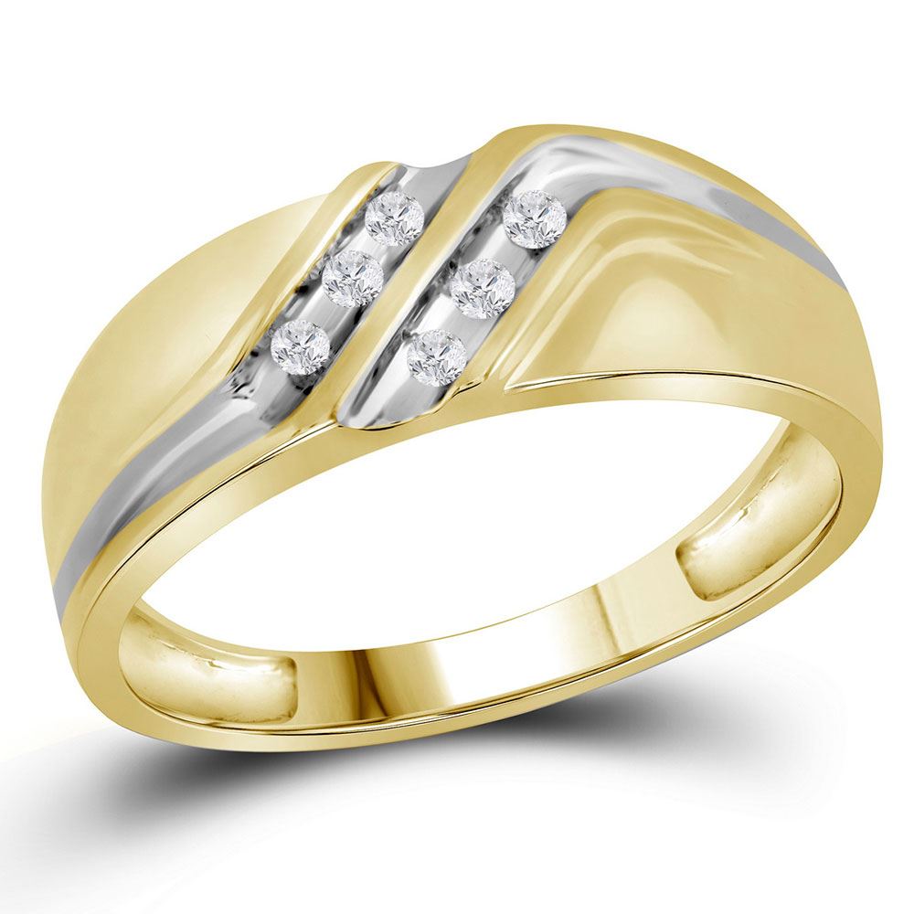 REF-22V7A - SKU: GD26571 ---- Mens Diamond Wedding Band Ring 1/8 Cttw 10kt Two-tone Gold