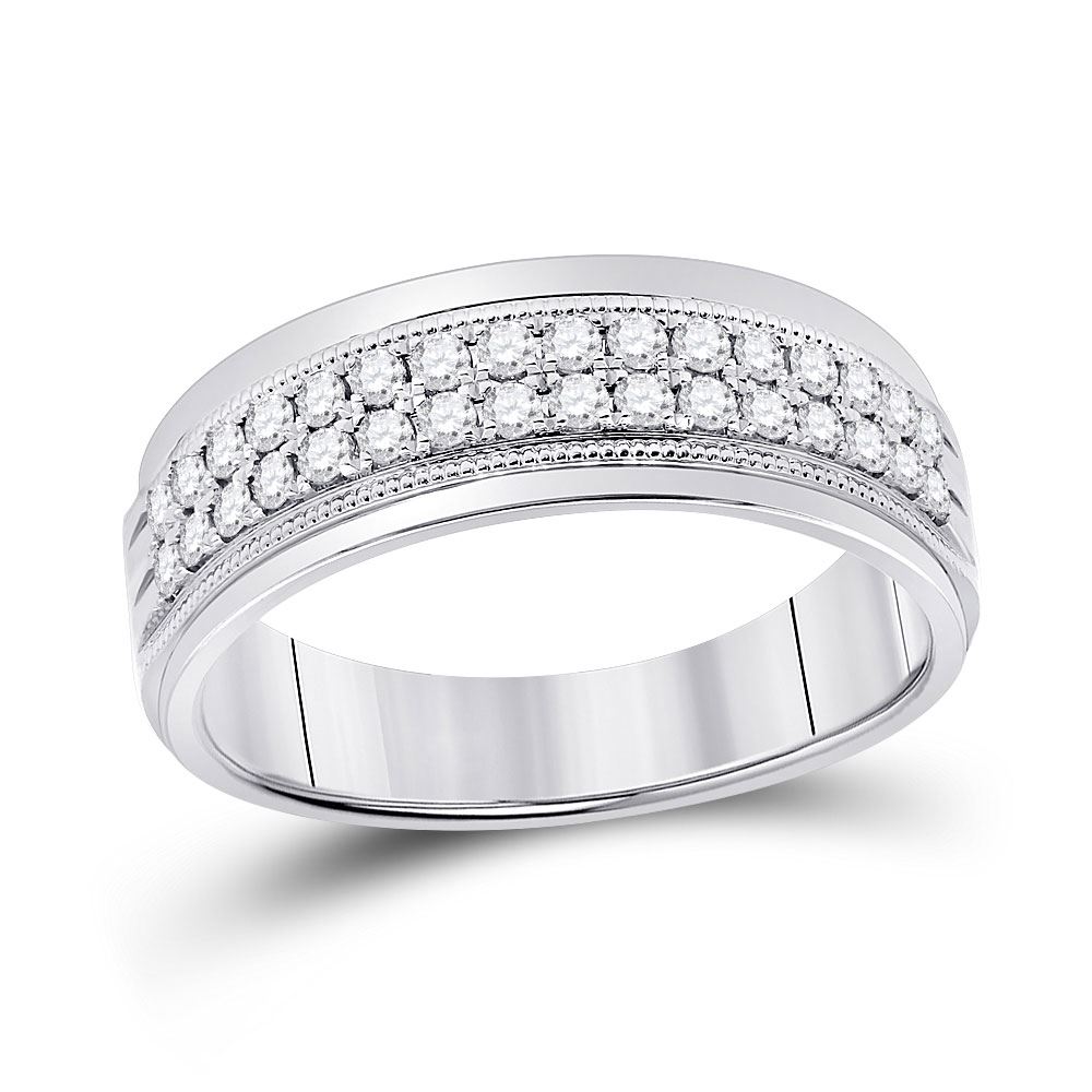 10kt White Gold Mens Round Diamond Wedding Machine Set Band Ring 1/2 Cttw