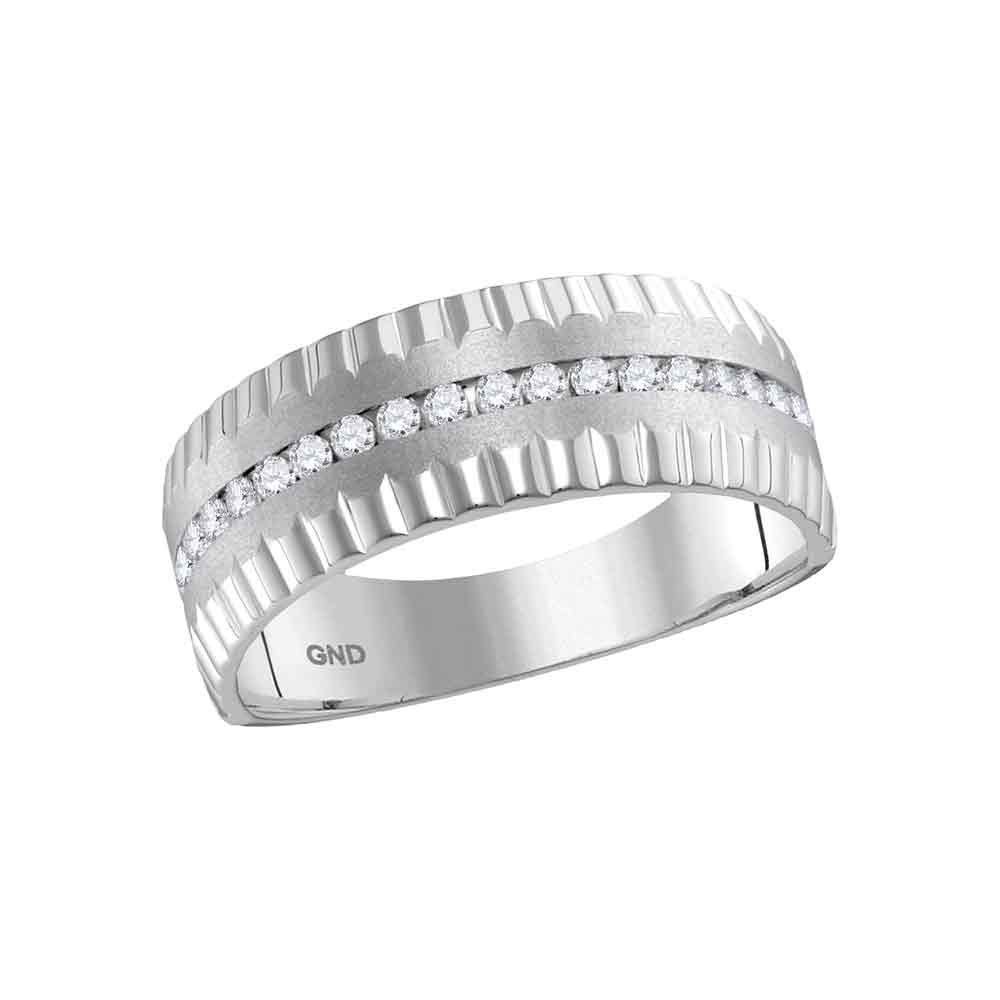 14kt White Gold Mens Round Diamond Wedding Machine-Set Band Ring 1/3 Cttw