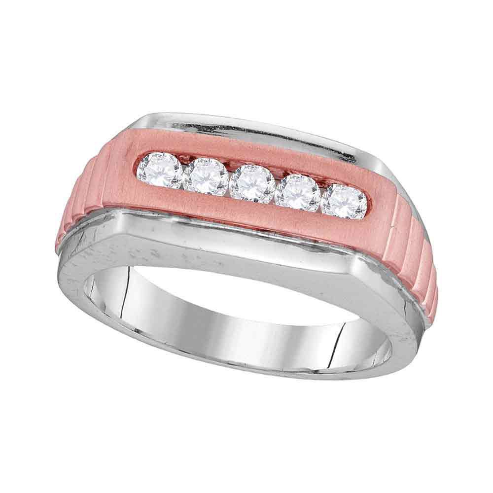 10kt Two-tone Gold Mens Round Diamond Wedding Ribbed 5-Stone Band Ring 1/2 Cttw