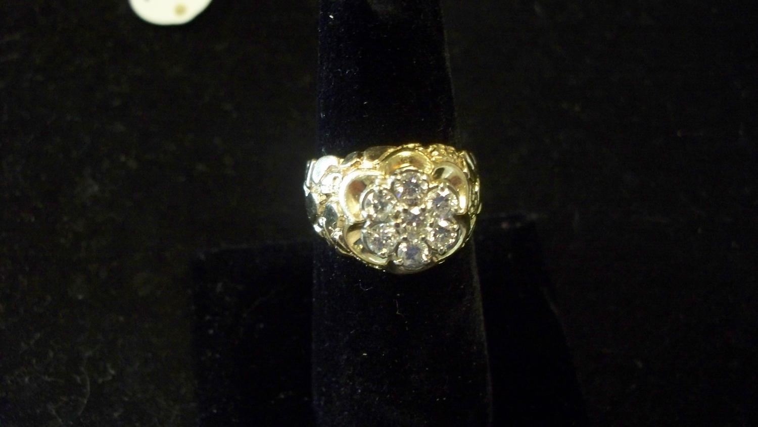 Mens Gold Nugget Diamond Ring, 1 Ct, 6.9 Gr 14 K