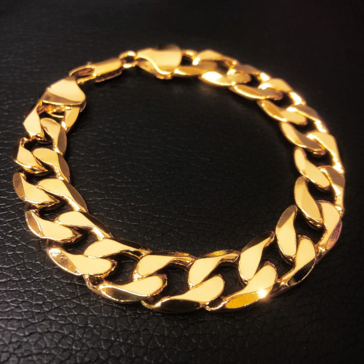 Mens Gold Tone Cuban Link Chain Bracelet. View Photos For Further Details.