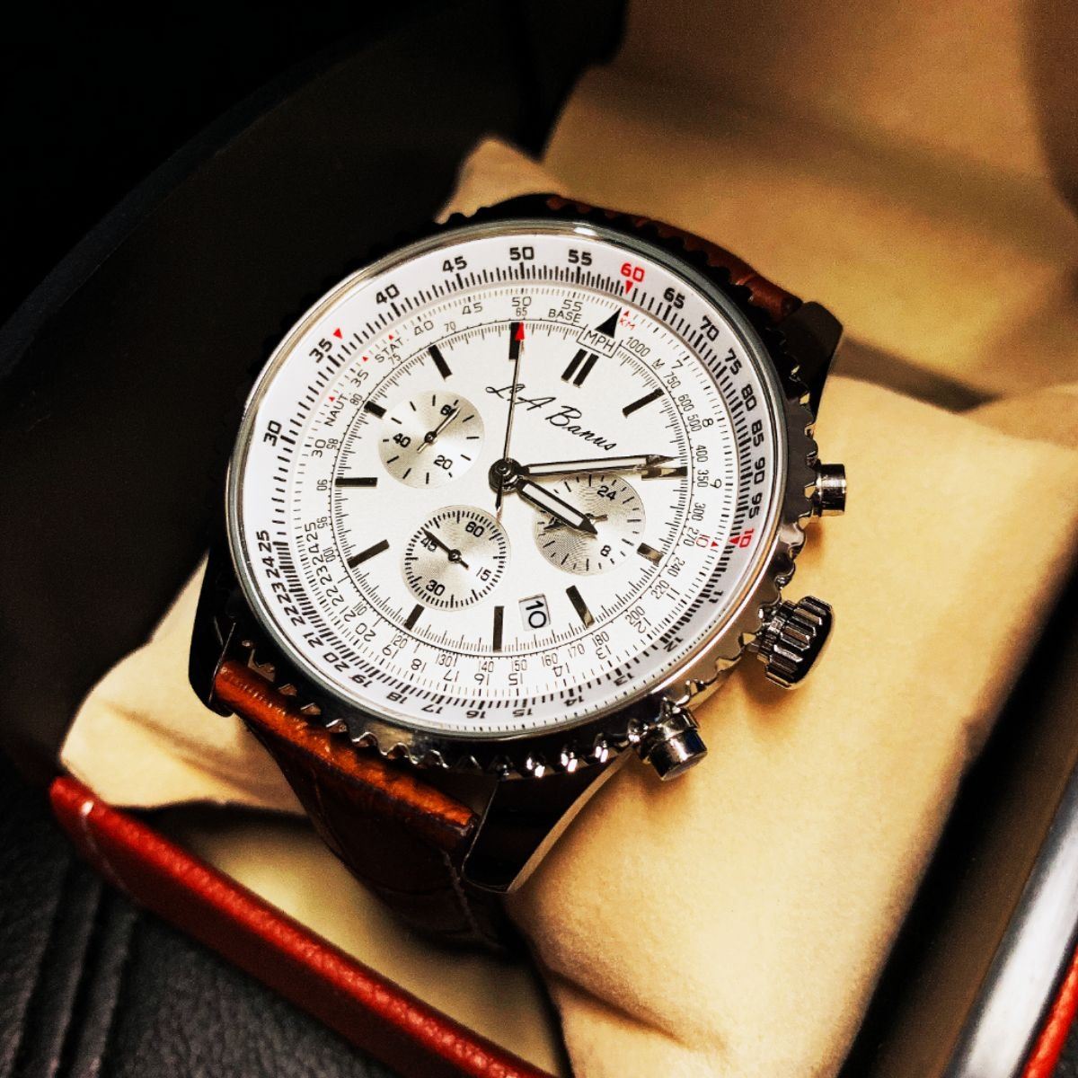 Mens L.A. Banus Formal White Dial Chronograph Genuine Leather Band Watch. The Watch Is Accompanied By A Mounting Pillow & Stitch Leather Casing From L.A Banus. This Offers Safe Keeping For Your Watch In You Collection. Please View Photos For Further Details.