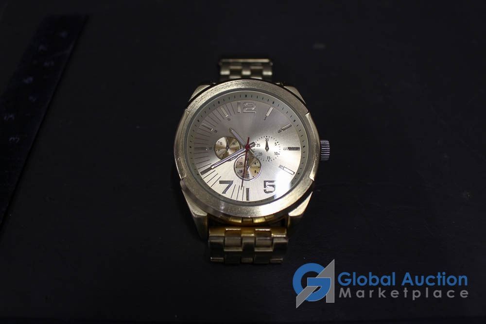 Mens Large Faced Gold Coloured Watch w/Metal Band