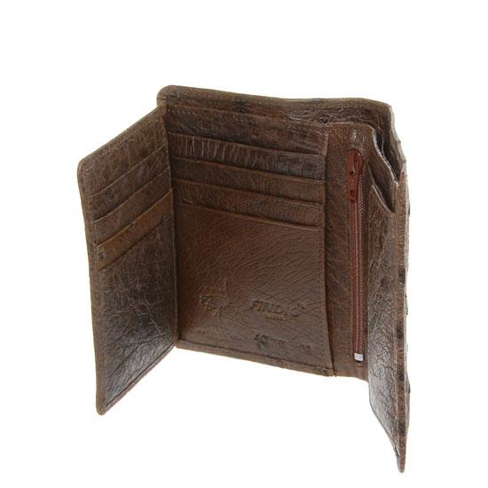 Well made; brand new mens Ostrich Hide upright wallet. Sought after top skin. 5" x 3.5" when folded; multiple card slots; bill slots inside. Full ostrich skin inside as well. $395 retail