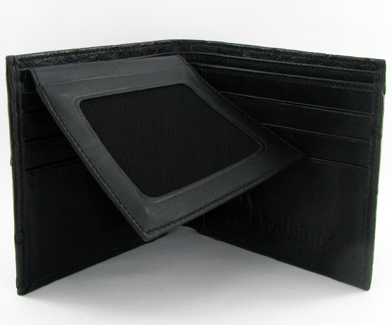 Well made; brand new mens Ostrich Hide wallet. Sought after top skin. 4" x 3.5" when folded; multiple card slots; bill slots inside. $325 retail