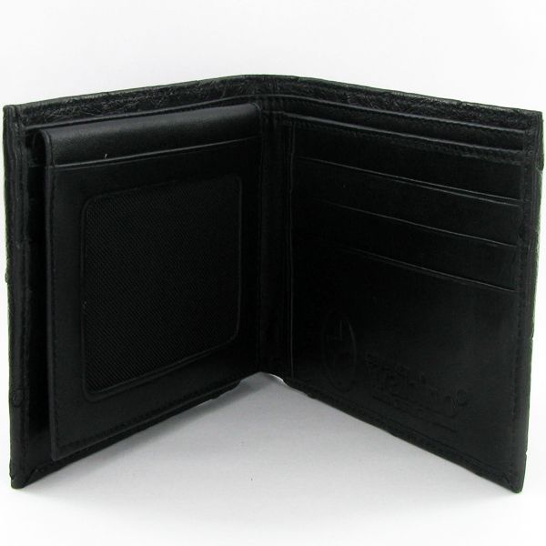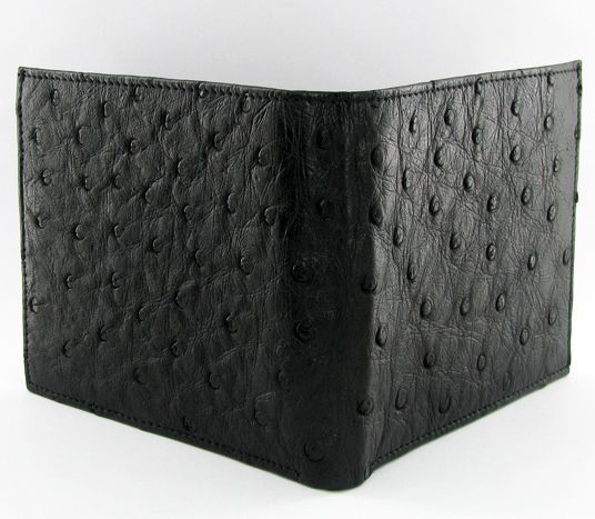 Well made; brand new mens Ostrich Hide wallet. Sought after top skin. 4" x 3.5" when folded; multiple card slots; bill slots inside. $325 retail