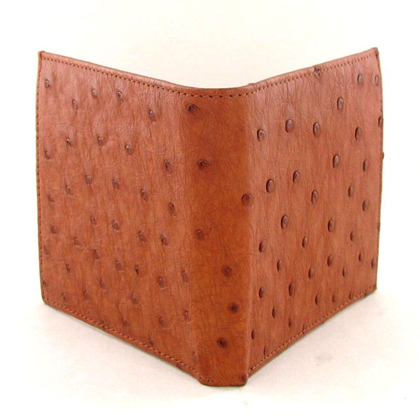 Well made; brand new mens Ostrich Hide wallet. Sought after back skin dyed brown. 4.25" x 3.5" when folded; multiple card slots; bill slots and license flap inside