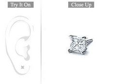 A princess-cut diamond is set in a rich platinum 4-prong mounting. This diamond stud earring has a total weight (TDW) of 0.15 ct and is available in either screw-back or push-back.