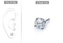 A round diamond is set in a rich platinum 4-prong mounting. This diamond stud earring has a total weight (TDW) of 0.50 ct and is available in either screw-back or push-back.