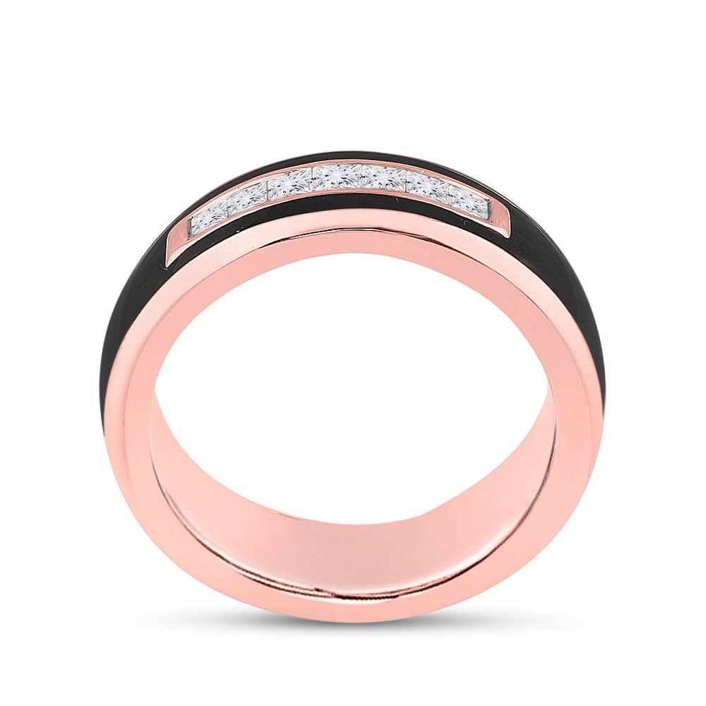14kt Rose Gold Mens Princess Diamond Band Ring 1/2 Cttw