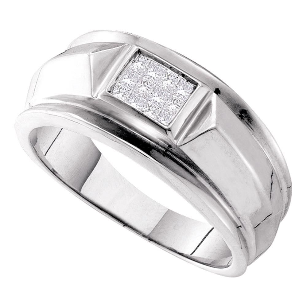 REF-54F9W ---- Mens Princess Diamond Cluster Band Ring 1/4 Cttw 14kt White Gold