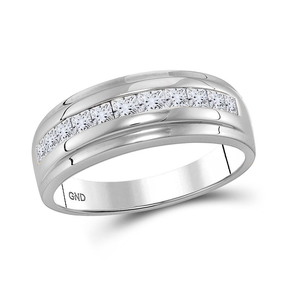 10kt White Gold Mens Princess Diamond Single Row Wedding Band Ring 1 Cttw