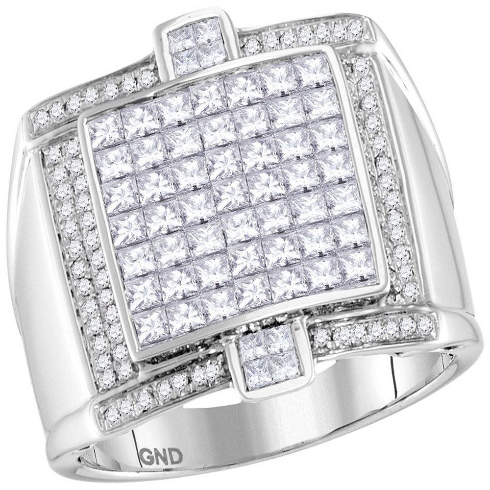 14kt White Gold Mens Princess Diamond Square Luxury Cluster Ring 2 Cttw