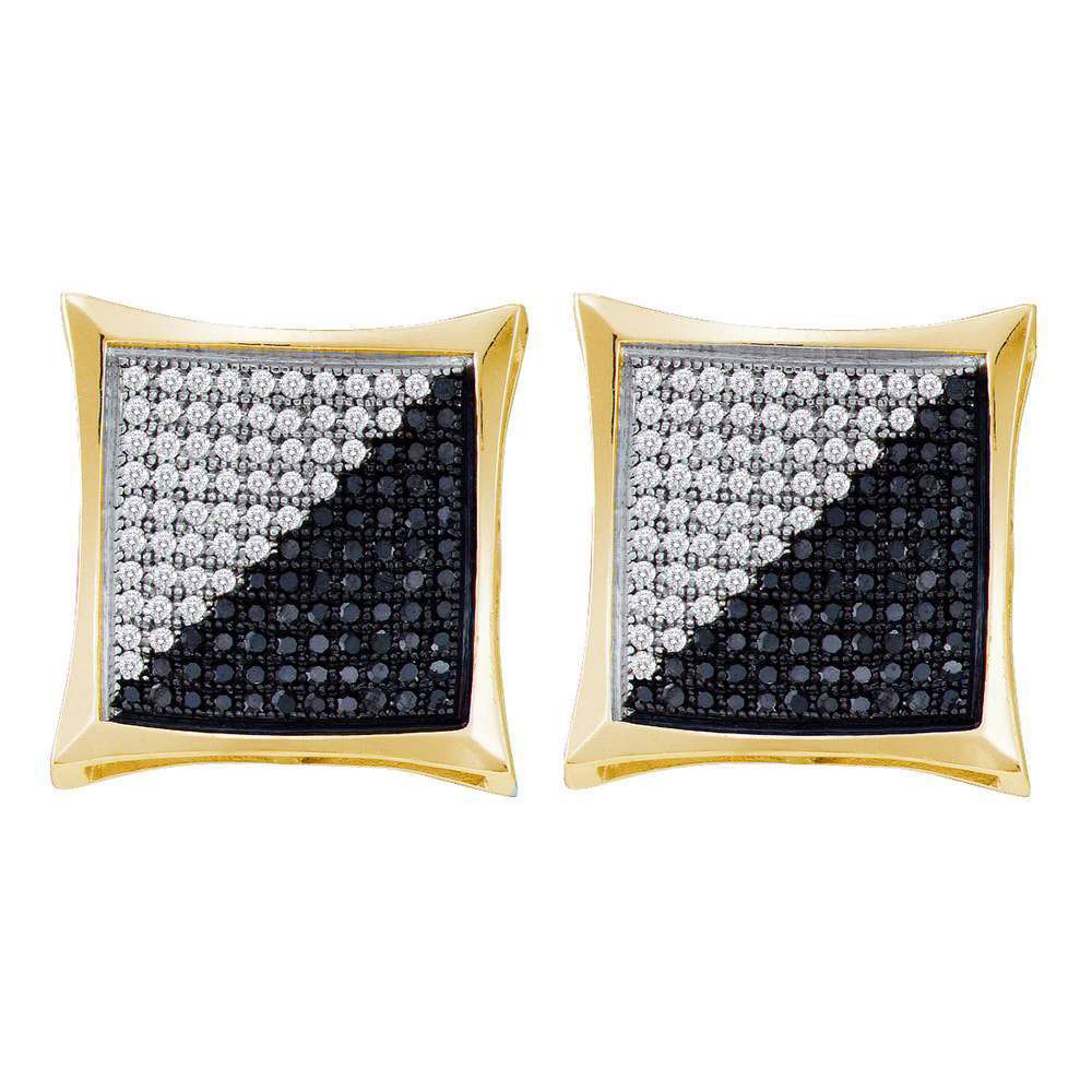 REF-17H3W - SKU: GD57350 ---- Mens Round Black Color Enhanced Diamond Square Kite Cluster Earrings 1/4 Cttw 10kt Yellow Gold