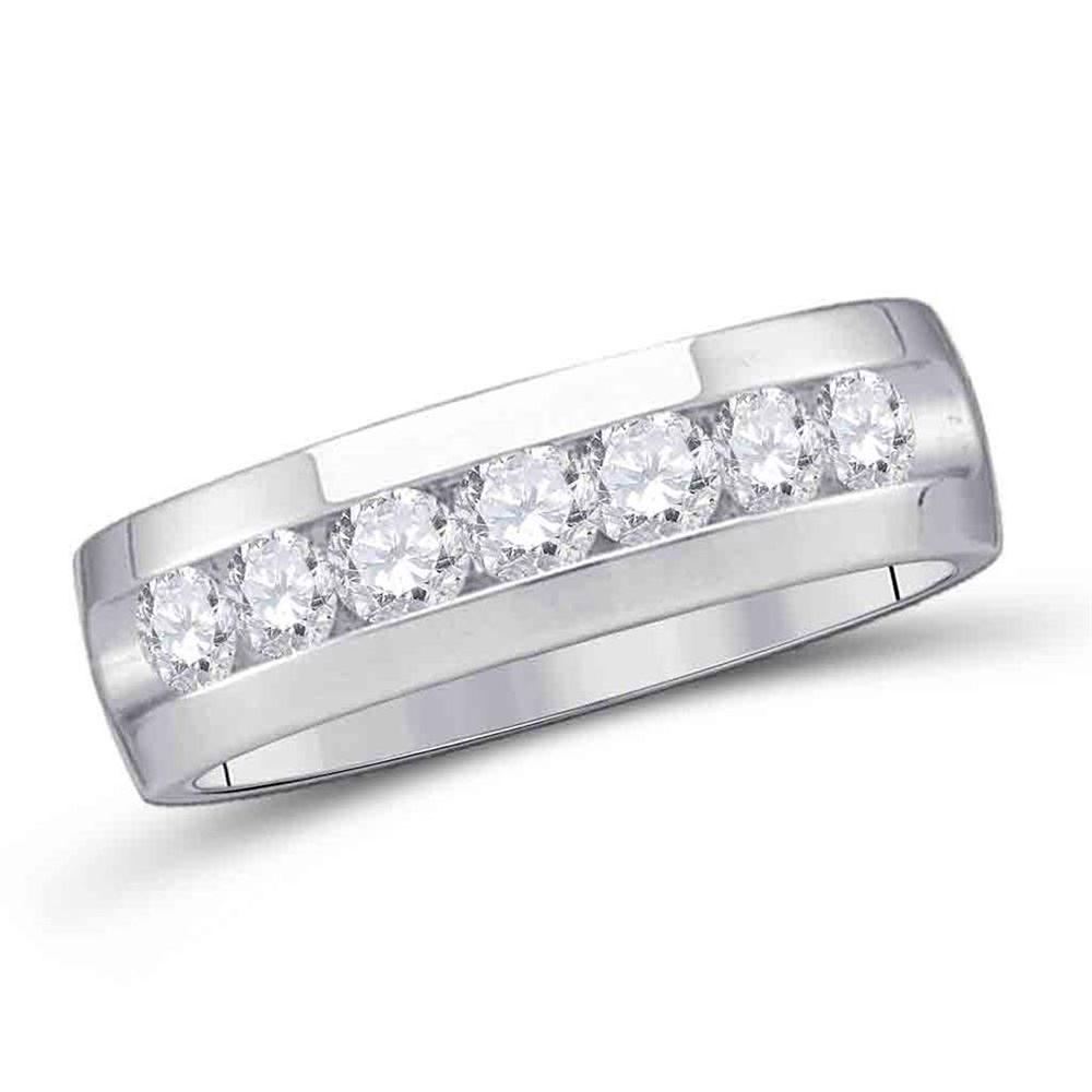 REF-52M9H ---- Mens Round Channel-set Diamond Wedding Band Ring 1/4 Cttw 14kt White Gold