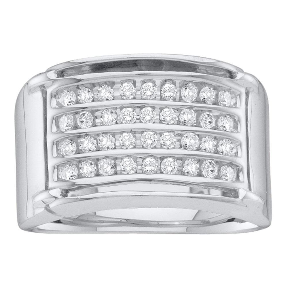 REF-37F9W ---- Mens Round Diamond 4-Row Band Ring 1/2 Cttw 10kt White Gold