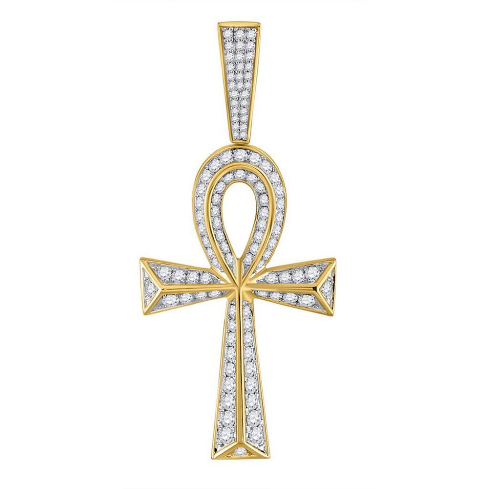 10kt Yellow Gold Mens Round Diamond Ankh Cross Charm Pendant 1-5/8 CttwItem Number: GND-150061Gemstone Details<span